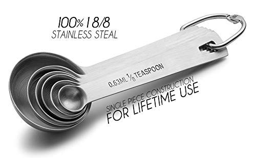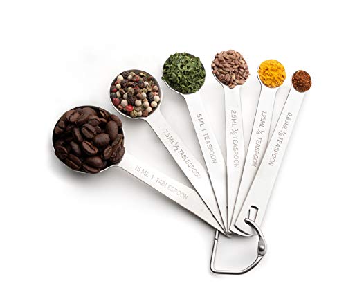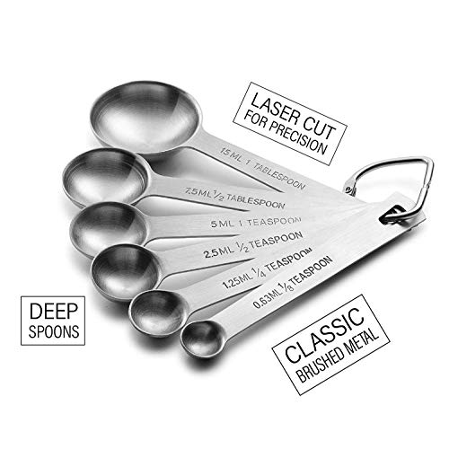 THE MOST ACCURATE, EASY-TO-READ MEASURING SPOONS: Your old spoons never stood a chance! Bellemain spoons are laser cut for the smoothest, most accurate measuring spoons around. This six-piece set is clearly marked and includes all the essentials: 1/8 teaspoon, ¼ teaspoon, ½ teaspoon, 1 teaspoon, ½ tablespoon, and 1 tablespoon.